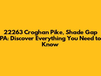 Hey guys! Ever stumbled upon an address and wondered, "What's the story behind this place?" Well, today we're diving deep into 22263 Croghan Pike, Shade Gap, PA. This isn't just a random string of numbers and a street name; it's a location with its own unique identity, history, and community. Whether you're planning a visit, doing some research, or just plain curious, this is your go-to guide for everything you need to know.