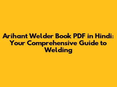 Arihant Welder Book PDF: Your Hindi Guide To Welding
