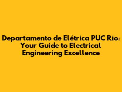 Hey guys! Are you looking to dive into the world of electrical engineering at PUC Rio? You've come to the right place! In this article, we're going to break down everything you need to know about the Departamento de Elétrica at PUC Rio, from its history and academic programs to research opportunities and what makes it stand out. So, buckle up and let's get started!