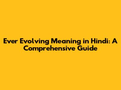 Ever Evolving Meaning In Hindi: A Comprehensive Guide