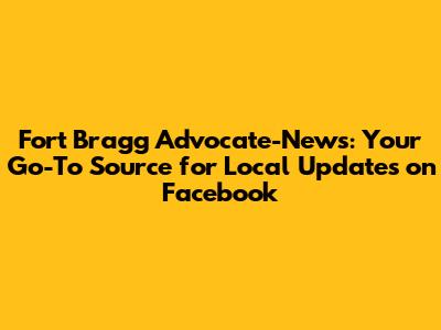 Hey guys! Are you looking to stay informed about everything happening in Fort Bragg? Well, you've come to the right place. Let's dive into how Fort Bragg Advocate-News on Facebook is your ultimate source for local news, events, and community stories. In this article, we'll explore how to navigate their Facebook page, what kind of content you can expect, and why it's so crucial to stay connected with local news. So, buckle up and let's get started!