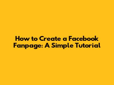 How To Create A Facebook Fanpage: A Simple Tutorial