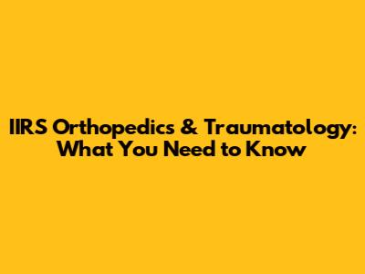 IIRS Orthopedics & Traumatology: What You Need To Know