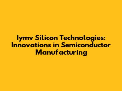 Iymv Silicon Technologies: Innovations In Semiconductor Manufacturing