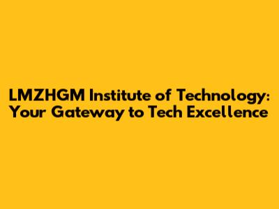 LMZHGM Institute Of Technology: Your Gateway To Tech Excellence
