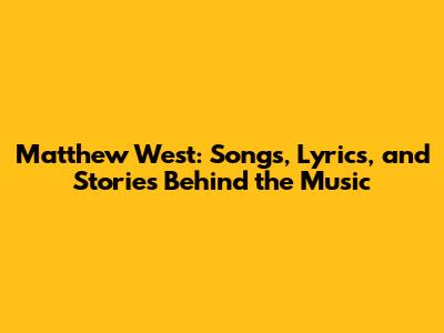Matthew West: Songs, Lyrics, And Stories Behind The Music