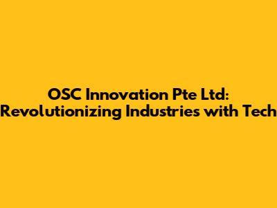 OSC Innovation Pte Ltd: Revolutionizing Industries With Tech