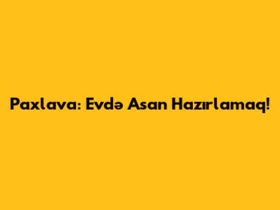Paxlava: Evdə Asan Hazırlamaq!