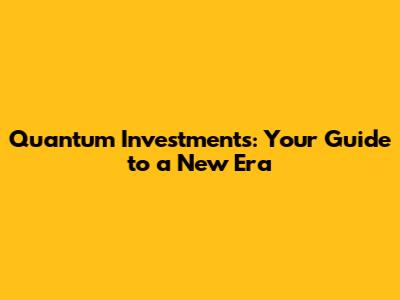 Quantum Investments: Your Guide To A New Era