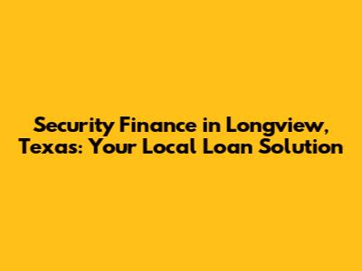 Security Finance Longview TX: Your Local Loan Solution