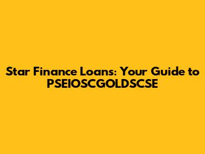 How Star Finance Loans Can Relate to PSEIOSCGOLDSCSE
