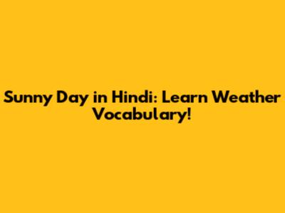 Sunny Day In Hindi: Learn Weather Vocabulary!