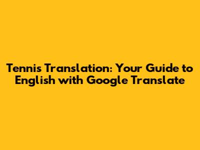Tennis Translation: Your Guide To English With Google Translate