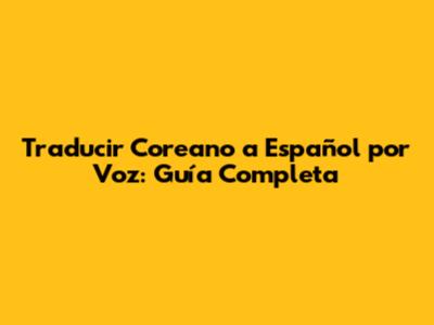 Traducir Coreano A Español Por Voz: Guía Completa